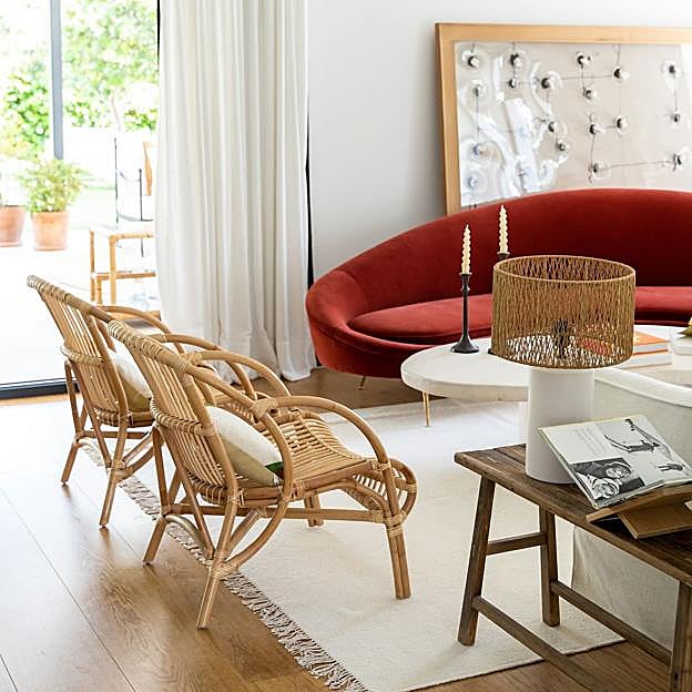 Un sofá: ¿cuál diríamos que es la pieza principal de un salón? Seguramente el sofá. Es por ello que si quieres escoger un mueble más llamativo, tiene que ser este. Si ya quieres lanzarte de lleno a las tendencias del 2024, opta por el color rojo, dejando como resultado un elemento decorativo único.