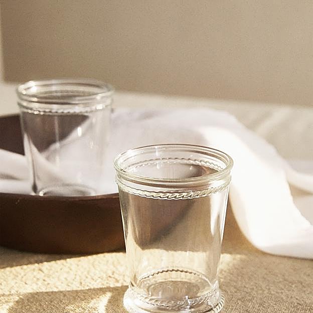 La segunda opción, que ya está en nuestra lista de deseos, es un poco más sencilla, pero no por ello menos acertada. Es un vaso transparente, pero que cuenta con el detalle en relieve trenzado tanto en la zona superior, como en la base (3,99 euros).