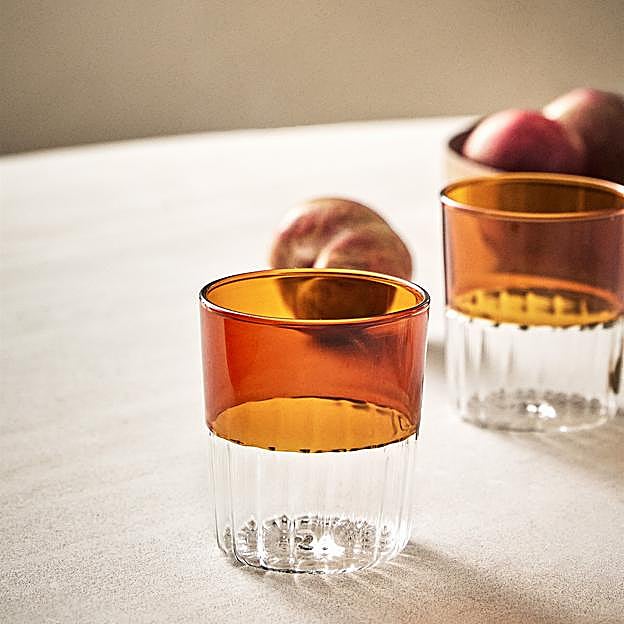 Por último, pero no menos importante, hemos fichado este vaso de borosilicato bicolor. En la parte superior cuenta con un tono anaranjado muy bonito, y la parte inferior es transparente, pero con un diseño de líneas que da el toque distintivo (5,99 euros).