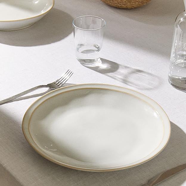 Para los platos, sí que conserva la elegancia del blanco y la calidad del gres, pero con un toque distintivo muy sutil, a través de un diseño de doble filo, que añadirá un toque rústico (9,99 euros).