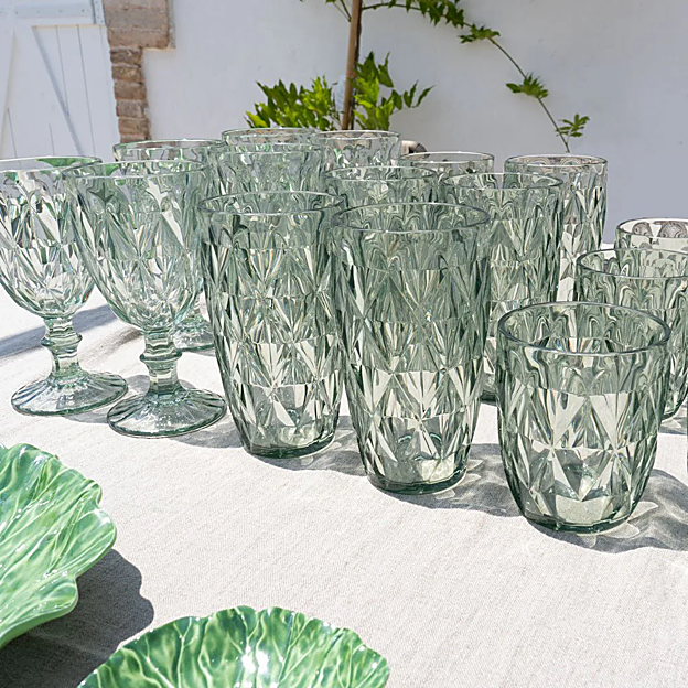 Si eres de las que quiere invertir por fin en una buena cristalería, entonces una como esta es todo lo que buscas. Se trata de un diseño con rombos en color verde, ideal para complementar y dar un toque fresco, original y diferente a tus mesas esta temporada. Cristina Oria (119 euros).