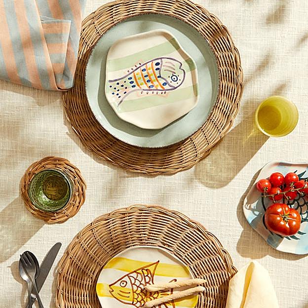 Los bajoplatos son un clásico infalible a la hora de montar una mesa, y con el inicio de la primavera/verano, los que son de mimbre o rafia son la mejor opción, que darán mucho juego a la hora de combinar. La Redoute (37,99 euros).