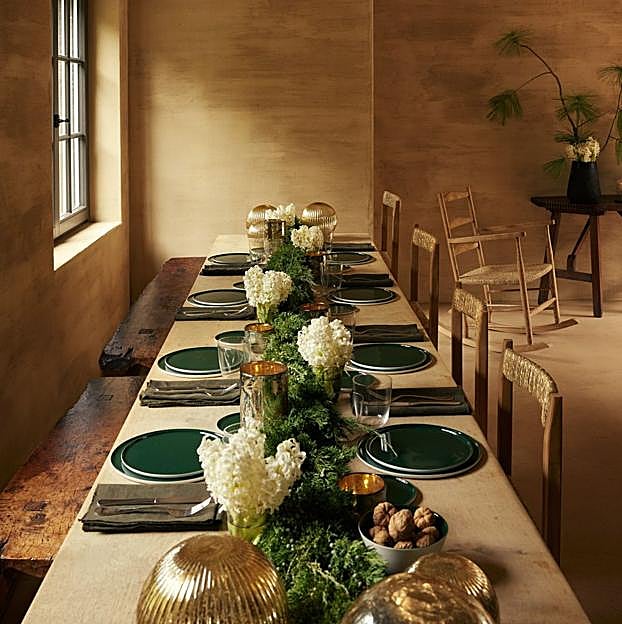Uno de los colores que más vamos a ver en la decoración esta temporada es el verde. No solo lo vemos adueñándose del mobiliario, como los sofás o las estanterías, sino que en la decoración de la mesa también va a estar presente. Puedes optar por él en pequeñas dosis, o lanzarte de lleno para un total look.