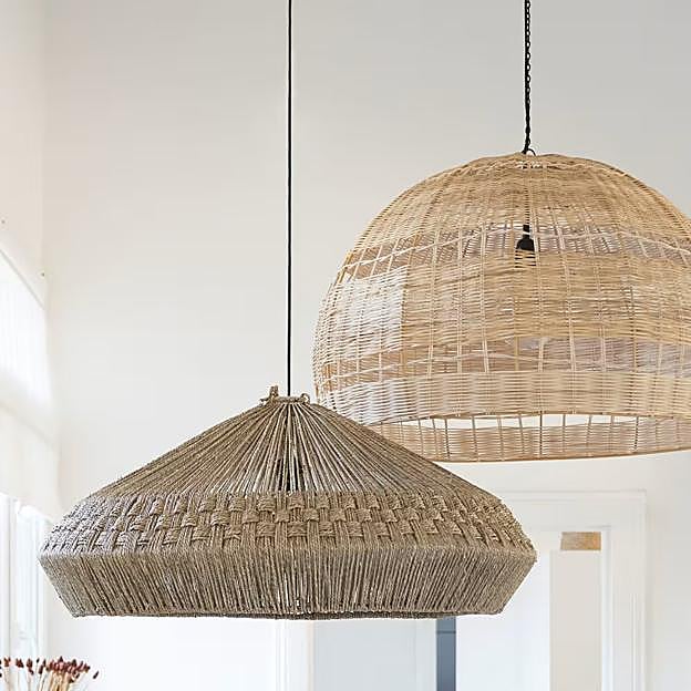 La iluminación es tan importante, que puede cambiar por completo el aspecto de una habitación. No solo te recomendamos que optes por luces cálidas, sino que, si te guste el estilo rústico, esta lámpara de mimbre es perfecta para ti. (99,50 antes 199 euros).