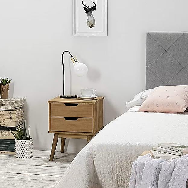 Las mesitas de noche son ese detalle al que muchas veces no le prestamos la atención que se merece. Son esenciales, y en torno a ellas hay un inmenso abanico de opciones, encontrando diseños en madera, sencillos pero eficaces, como este. (62,99 antes 129 euros).