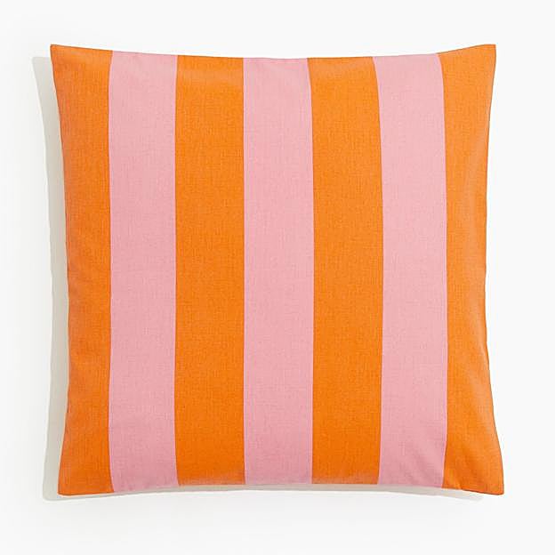 Los cojines tienen la capacidad de dar un lavado de cara a la habitación, de la forma más sencilla y eficaz. Este cuenta con una combinación súper original, teniendo el naranja y el rosa como protagonistas (9,99 euros).