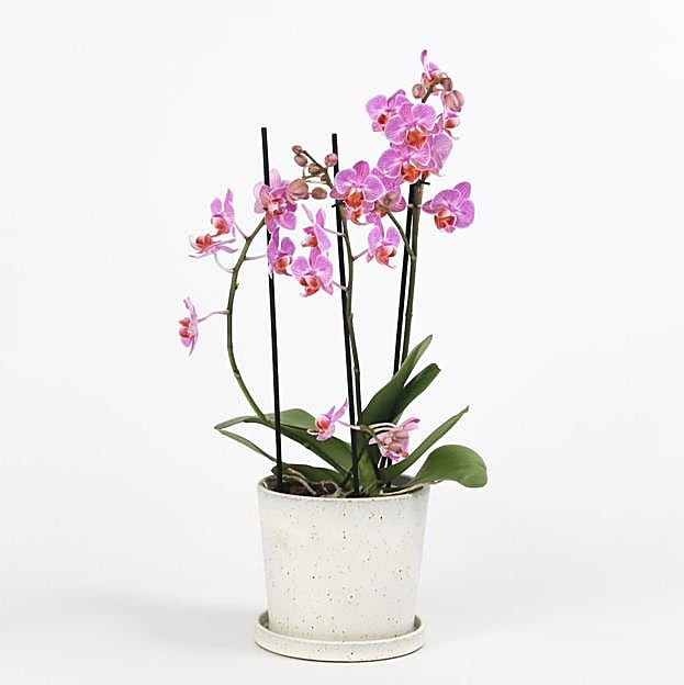 Las plantas pueden ser un buen detalle para introducir colores llamativos de forma sutil, pero eficaz. Ejemplo de ello, es esta orquídea mariposa. No solo produce elegantes flores de hermosos tonos, sino que también es fácil de cuidar y tiene un largo periodo de floración que puede durar hasta tres meses (34,99 euros).