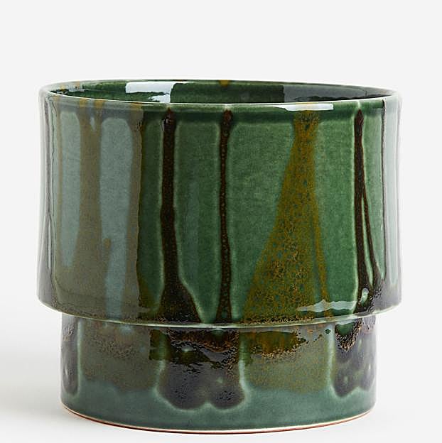 Para los maceteros, y como bien te adelantábamos, encontramos opciones ideales como esta. Fabricado en terracota vidriada, tiene un esmalte reactivo que confiere a cada uno un acabado cromático único, siendo una pieza súper especial (29,99 euros).