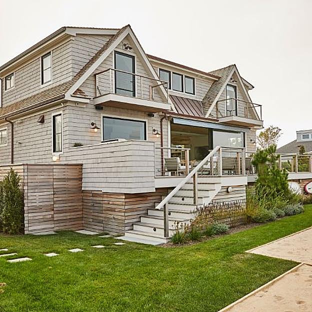 Por último, hacemos parada en la 'joya de la corona' de esta mansión en los Hamptons: la imponente terraza. «Lo más especial de este lugar son las vistas al mar y a la bahía y por eso diseñamos grandes ventanales y puertas», cuenta la interiorista, además de dar un gran protagonismo a esta zona, en la que encontramos un comedor exterior, una zona de sofás y una gran barbacoa. ¿El truco deco que necesitamos copiar? La barandilla de cable de acero que no tapa las vistas en ningún punto.