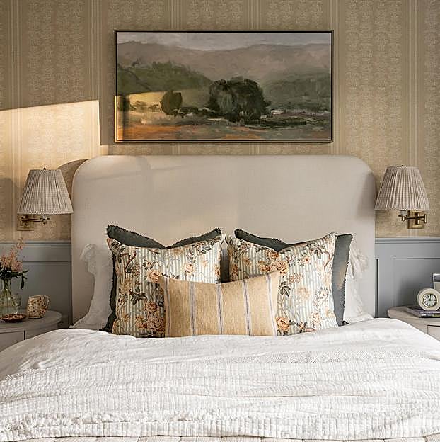 Este amarillo suave con una tonalidad cercana al vainilla es el protagonista indiscutible de las tendencias de primavera. Aporta optimismo y energía, pero su matiz empolvado también añade confort y calma. Por eso, es perfecto para el dormitorio. En este caso, con el método 60-30-10 en la mano, el beige es el color predominante; el tono secundario es el butter yellow como nota de tendencia; y el matiz cromático es el verde musgo.