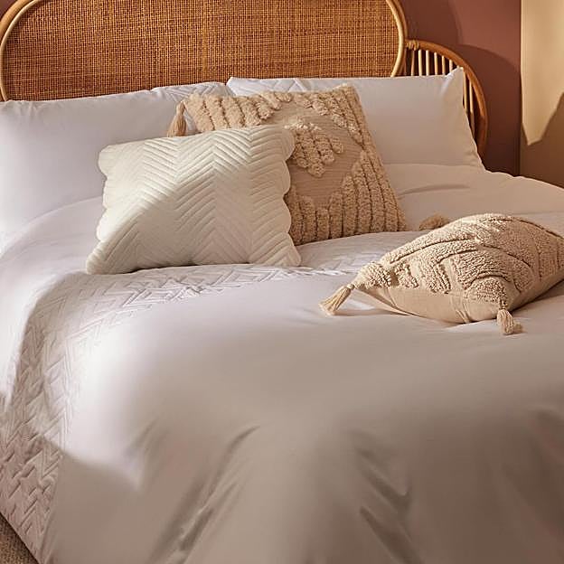 De inspiración vintage y un punto 'coastal grandma' (la tendencia deco que se inspira en la casa de la playa de la abuela), esta propuesta de Primark Home es un sí rotundo por varios motivos: el blanco nunca falla y hace que los espacios parezcan más grandes y luminosos, es atemporal y nunca pasa de moda y, además de baratísimo (desde 30 euros) es de una calidad premium por su algodón orgánico y sostenible.