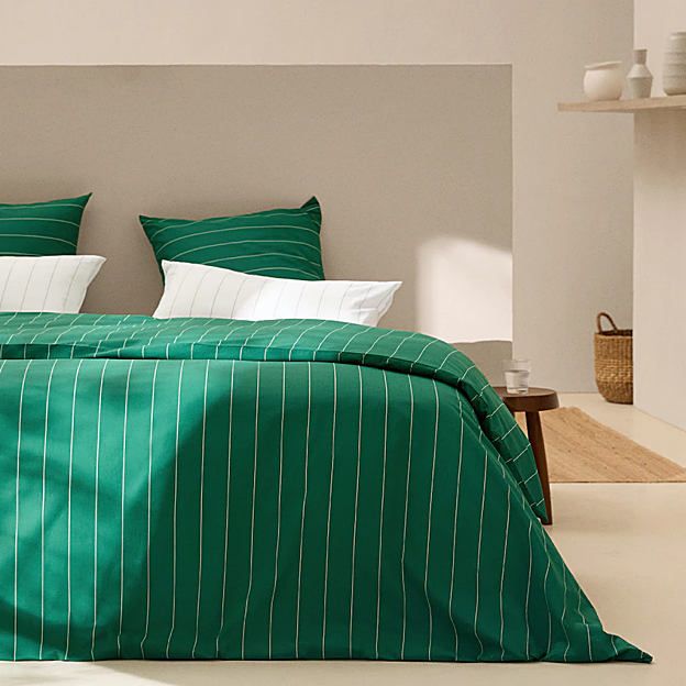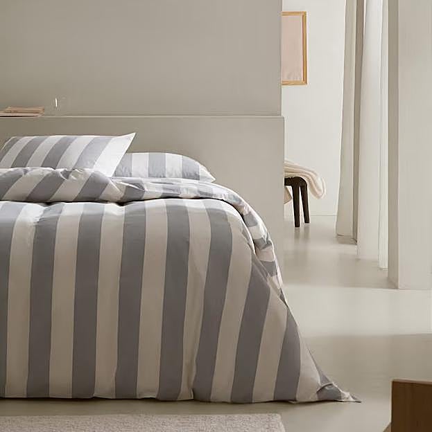 No solo lo vemos a la hora de vestir, sino que su popularidad ha hecho que sea una gran alternativa en nuestras camas. Combina tonos básicos, como el blanco y el azul bebé, pero que puedes dar juego con cojines en colores más llamativos (39,99 euros).