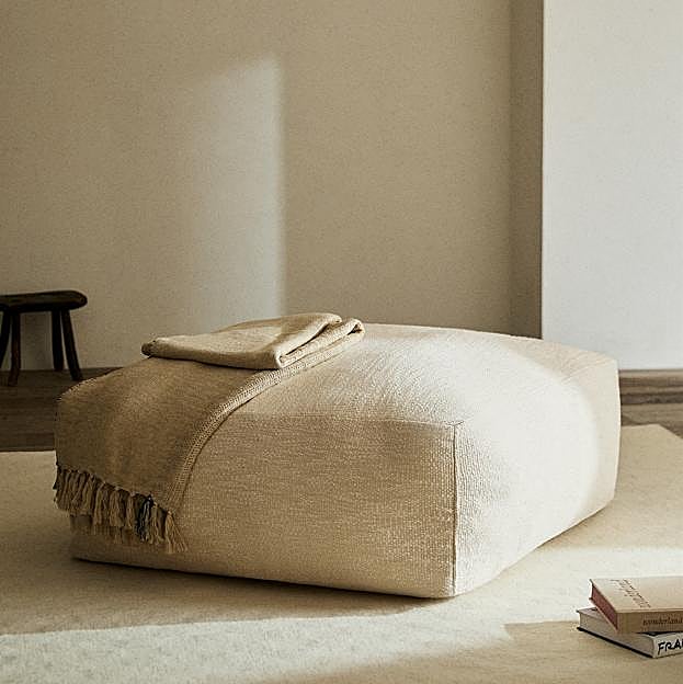 ¿Cansada del clásico sofá? Siempre puedes completar con algún puff, que da un toque original a la estancia, y más si es con un diseño tan ideal como el que propone Zara Home (149 euros).