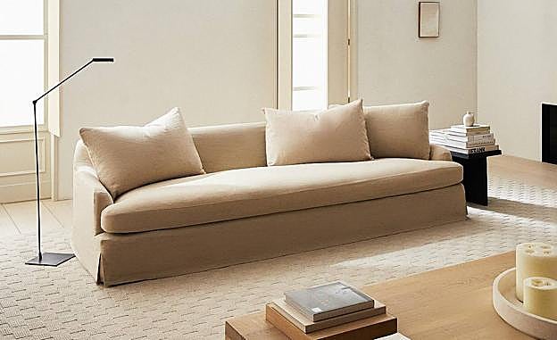 Otra pieza llamada a ser icónica es este elegante y minimalista sofá de lino beige. De diseño clásico reactualizado, su confort es su gran carta de presentación: bajo su tapicería británica encontramos espuma y muelles recubiertos de plumón. Es desenfundable, incorpora cojines decorativos, tiene rudas para poder moverse y cuesta, eso sí, entre 4.200 y 5.000 euros, según el tamaño.
