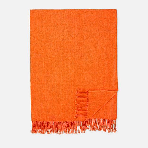 Durante las noches de verano también refresca, y que hay mejor que una manta ligera, pero en un tono ideal, como esta en naranja. Puedes utilizarla con la caída del sol, y dejarla a modo de decoración durante el día (14 euros).