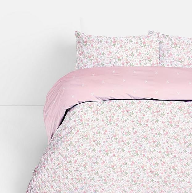 En la ropa de cama, queremos darle un toque extra que se salga de las clásicas sábanas blancas. Una gran alternativa son los estampados, especialmente las flores, ya que puedes conseguir ese aire renovado, pero sin ser demasiado estridente (20 euros).