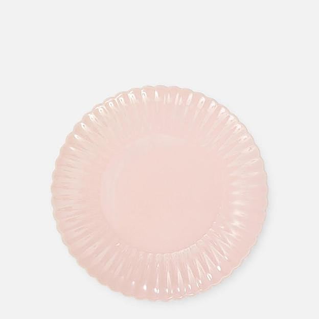 Otra alternativa de plato más sencilla, pero igual de acertada, es este en color rosa empolvado festoneado, que da un toque de fantasía a la mesa, teniendo mil posibilidades a la hora de combinar con otros elementos (6 euros).