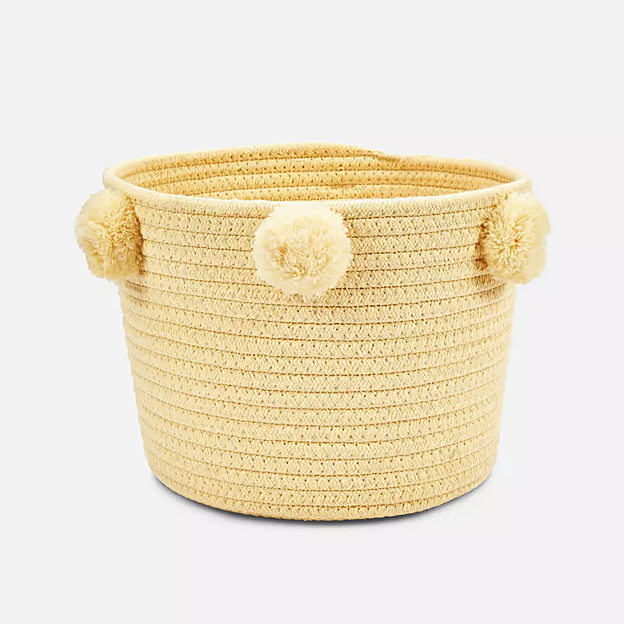 El almacenamiento también puede ser estético, y prueba de ello es esta cesta con pompones tan bonita, que puedes colocar en tu tocador y guardar tus joyas o productos de maquillaje (5 euros).