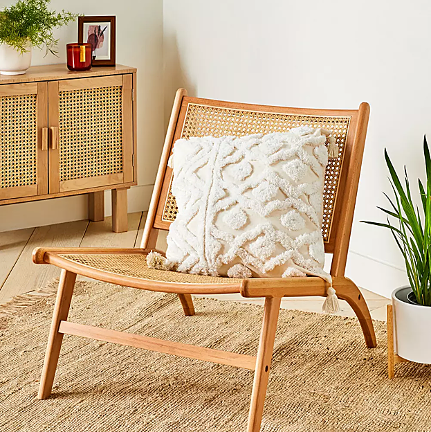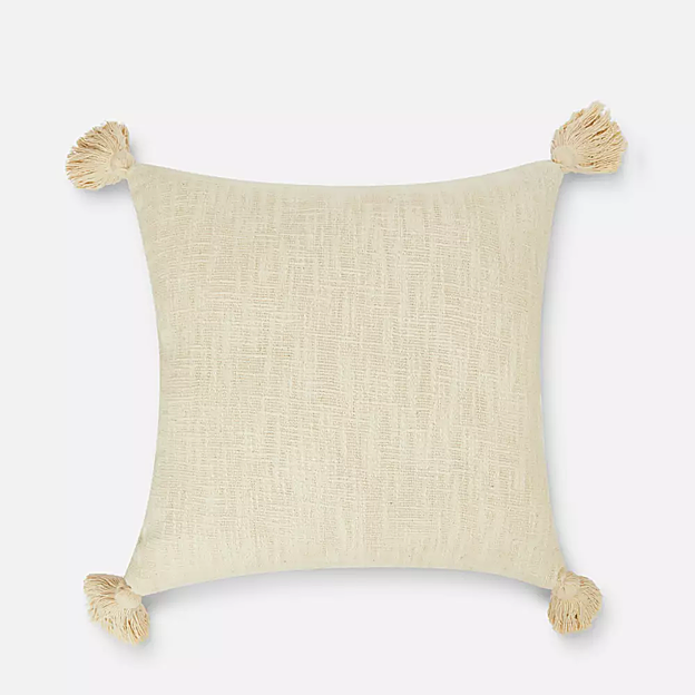 La elección de los cojines puede parecer un detalle sin importancia, pero lo cierto es que pueden tener un papel protagonista. Este texturizado con borlas quedará ideal con cualquier cosa (14 euros).