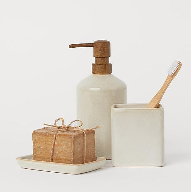 Retomando el baño, la democratización de la decoración ha hecho que hasta los utensilios más banales consigan contar con diseño y estilo. Como por ejemplo el vaso para los cepillos de dientes, que H&M Home presenta en clave de cerámica y un tono verde menta ideal (5,99 antes 9,99 euros).