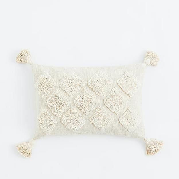 Los cojines son nuestra inversión preferida en este terreno, porque tienen la capacidad de dar un giro de 180 grados en un solo gesto. Uno de nuestros modelos preferidos dentro de las rebajas de H&M Home ha sido este en tejido jacquard de algodón y borlas grandes (8,99 antes 19,99 euros).