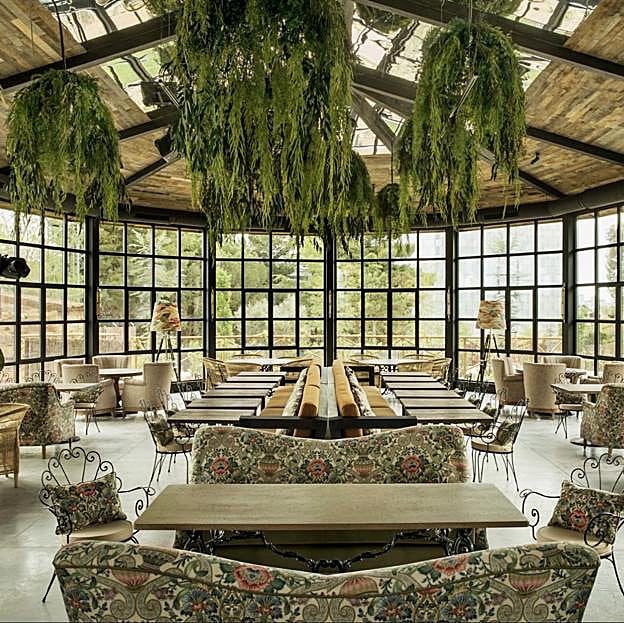 Este interiorismo es distinto a lo que hemos visto previamente, pero con el mismo objetivo, calar hondo en el comensal. Se inspira en el ambiente natural y la «organic vibe», protagonizando el espacio enredaderas naturales y materiales como el lino, el cuero o la lana.