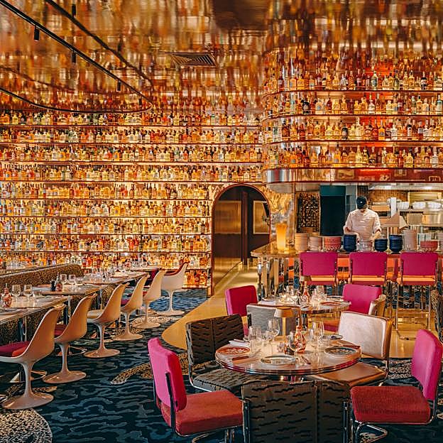 Acaba de abrir sus puertas en Madrid, ubicado cerca de la Torre Picasso. Después del éxito de Villa Capri y Bel Mondo, este es el tercer punto de encuentro del grupo Big Mamma. Este espacio está diseñado para transportarte a una atmósfera de generosidad y autenticidad italiana, en una experiencia inmersiva. Lo que más nos ha gustado, son las más de 2.000 botellas vintage que iluminan las paredes del primer piso, complementadas con otros elementos como tela de leopardo, obras de arte y muebles inspirados en Saarinen.