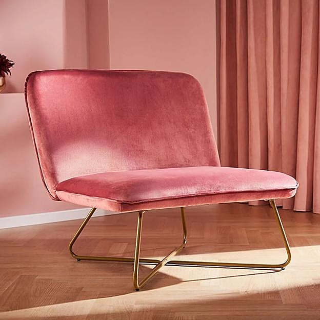 Con este sillón conseguirás darle un toque vintage a tu salón o tu habitación gracias a sus formas rectas, sus patas doradas elaboradas en metal, su amplio respaldo en formato XL y, sobre todo, su tapizado en terciopelo rosa. Y es que los sofás de terciopelo y más en este color, son los preferidos por las influencers, que inundan sus redes sociales con posados sobre sillones de este tipo.