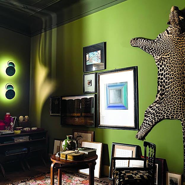 El dúo formado por el italiano Emiliano Salci y el estadounidense Britt Moran, Dimorestudio, es conocido por su capacidad de crear espacios casi sinestésicos. En este dramático dormitorio, unos escultóricos apliques iluminan estratégicamente un interior en el que, solo en paredes y techos (atención a las artesanales molduras), ya podemos distinguir tres tonos diferentes de evocador verde.