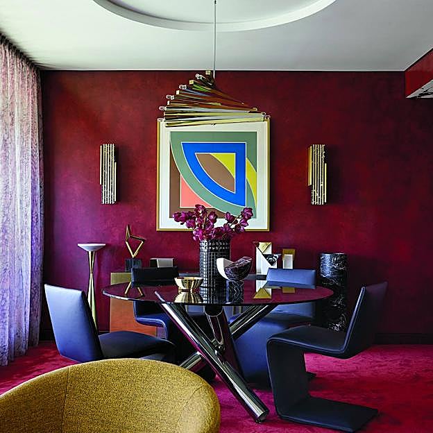 Este inspirado trabajo rubricado por Greg Natale en su Australia natal supone el final de un mito del color: los granates y otros tonos purpúreos no están condenados a un papel secundario. En este salón, convencen como protagonistas absolutos.