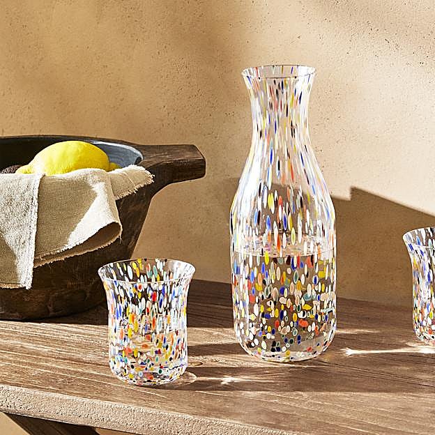 Para la cristalería, tampoco queremos decantarnos por los clásicos más sobrios ya que, por mucho que nos gusten, los tenemos demasiado vistos. Estos en cambio, con las motas de colores, darán el toque de gracia de forma sencilla, pero eficaz (5,99 – 22,99 euros).