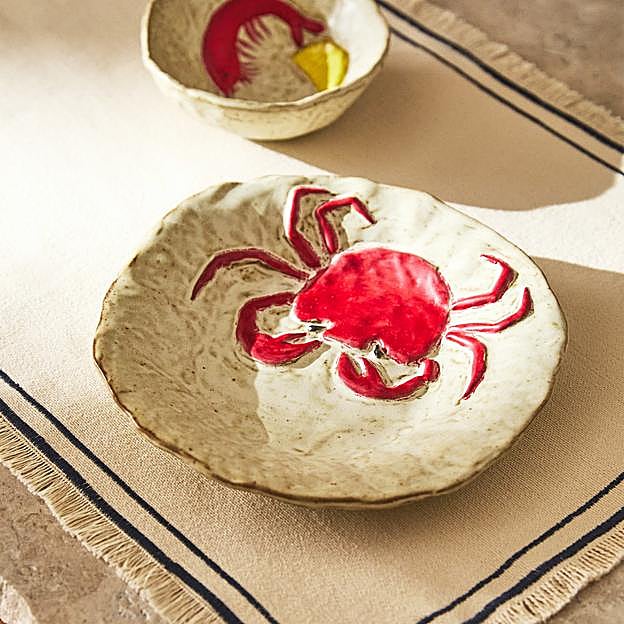 El estilo mediterráneo ha invadido las vajillas de Zara Home esta temporada, dejando a un lado los clásicos platos lisos, lanzando diseños tan atrevidos y originales como este con un cangrejo (12,99 euros).