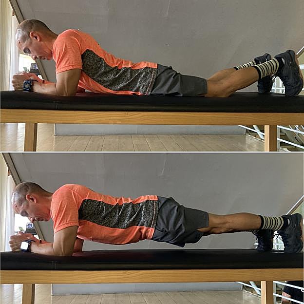 Cómo se hace: túmbate boca abajo y eleva el cuerpo apoyándote sobre los antebrazos y sobre las puntas de los pies. El cuerpo debe estar completamente recto, desde el cuello hasta los pies y debes mantener esta postura durante todo el ejercicio, sin que los glúteos se vayan hacia arriba o hacia abajo.