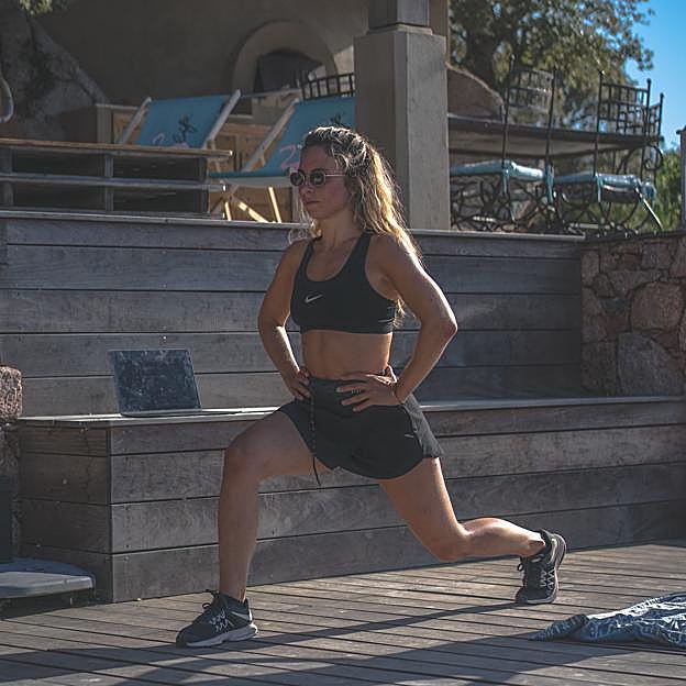 Este ejercicios viene fenomenal tanto para tonificar los muslos como para quemar grasa. Colócate de pie con los pies separados a la anchura de los hombros y da un paso hacia adelante con la rodilla en un ángulo de 90 grados. La otra pierna debe quedar flexionada atrás, casi tocando el suelo. A continuación, vuelve a la posición inicial y repite con la otra pierna.