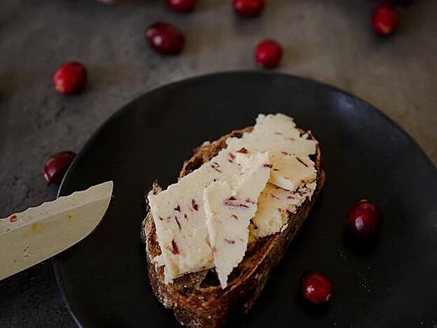 Elaboración: pon los anacardos en remojo durante 8-10 horas, escúrrelos y bátelos junto al tofu troceado, el agua, el zumo de limón, la sal y el ajo en polvo hasta obtener una mezcla cremosa. Añade a la mezcla la pimienta negra, las nueces troceadas y los arándanos picado. Coloca la mezcla apelmazándola en un molde de acero inoxidable y consérvalo en la nevera. ¡A disfrutar