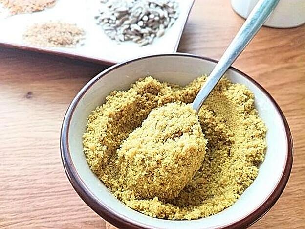 Elaboración: esta receta es rapidísima y muy sencilla. Tritura todos los ingredientes en un robot de cocina hasta conseguir una mezcla fina. Conserva tu parmesano vegetal en un envase a temperatura ambiente. Puedes añadirle otras especias para darle toques diferentes (ajo en polvo, orégano, comino…). Será un broche de oro que te encantará para rematar tus platos.