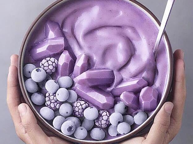Dale una vuelta al smoothie tradicional y traslada al terreno foodie toda tu creatividad. El secreto de estos batidos radica tanto en la elección de los alimentos como en la disposición de todos los elementos que les acompañarán, ya sean naturales o no. En este caso, se trata de una combinación de fruta con hielos en forma de amatistas.