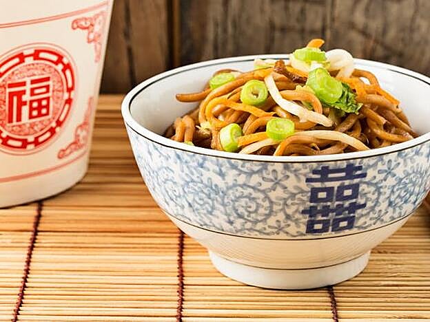 Mientras cueces los tallarines corta la verdura y la carne en trozos, mejor si son tiritas. Pasa la carne por la sartén salpimentada y déjala reposar. A continuación, haz en el wok las verduras crujientes y añade la carne y la salsa de soja. Una vez hechos los tallarines, escúrrelos bien y añadelos. Mezclar bien, decorar con cebolleta y, ¡listo!
