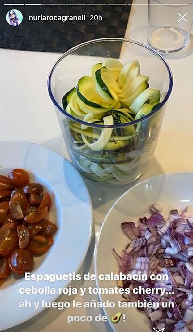La cuarentena ha hecho estragos en nuestras dietas y es que las ganas de picotear y comer todo el rato son propias de estados de ansiedad. El no poder salir de casa con libertad, la preocupación por la situación que estamos viviendo, el insomnio... son algunas de las razones por las que se hace más importante llevar una dieta saludable y equilibrada que nos ayude también a controlar los niveles de cortisol, la hormona del estrés, y pasar mucho mejor la desescalada. ¡Poco a poco lo estamos consiguiendo! Nuria Roca quiso aportar su granito de arena y compartir esta receta de espaguetis de calabacín con cebolla morada y tomates cherry en sus instagram stories. Aquí tienes el paso a paso.