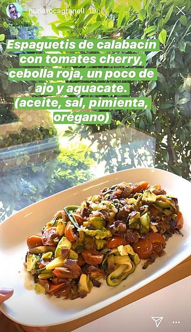 ¡Nuria Roca lo ha vuelto a hacer! De nuevo la presentadora compartió una nueva receta rica, saludable de esas que puedes comer cualquier día ya sea a mediodía o para la cena porque es súper saludable y además, tiene una pinta buenísima. Esta vez la colaboradora de El Hormiguero nos sorprendió con un plato de pasta light durante el confinamiento. ¡Cómo lo lees! Pero no, no te hagas ilusiones porque no se trata de pasta como tradicionalmente la conocemos, sino que Nuria se marcó un trampantojo de spaguetis de calabacín para rebajar las calorías y los hidratos de carbono pero sin renunciar a disfrutar de un plato rico. Y es que nos tiene más que acostumrbradas a compartir recetas de lo más saludables como por ejemplo, su sopa diurética favorita o esta ensalada que es facilísima de hacer y que tiene pintón.