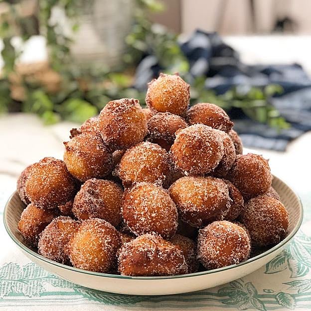Pon el azúcar en un plato y reboza bien los buñuelos. Deja que se enfríen y ya te los puedes comer.