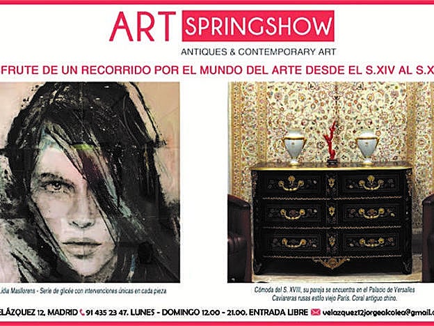 Es, probablemente, una de las formas más prácticas de acercarte de manera directa a obras de arte de los siglos XVI al XIX. Piezas de pintores, escultores y ebanistas que guardan entre sus pliegues y rugosidades historias fascinantes, capaces de enriquecer cualquier espacio. Montada por segundo año consecutivo en la Sala Alcolea, la feria de arte antiguo y contemporáneo Art Springshow –organizada por las galerías Jorge Alcolea Arte Contemporáneo (Madrid), Alcolea & Krauss (Menorca), Sala Nonell (Barcelona) y Californie (Cannes, Francia)– cuenta con grandes piezas de colección, objetos de alta época, muebles antiguos, obras de grandes nombres de la pintura española de los siglos XIX y XX y una cuidada selección de obras contemporáneas. Entre las firmas de artistas reunidos, destacan las de los pintores Miguel Macaya, Isabel Ramoneda, Mario Pávez, el dibujante de la Movida madrileña Ceesepe o el fotógrafo ibicenco Toni Riera.